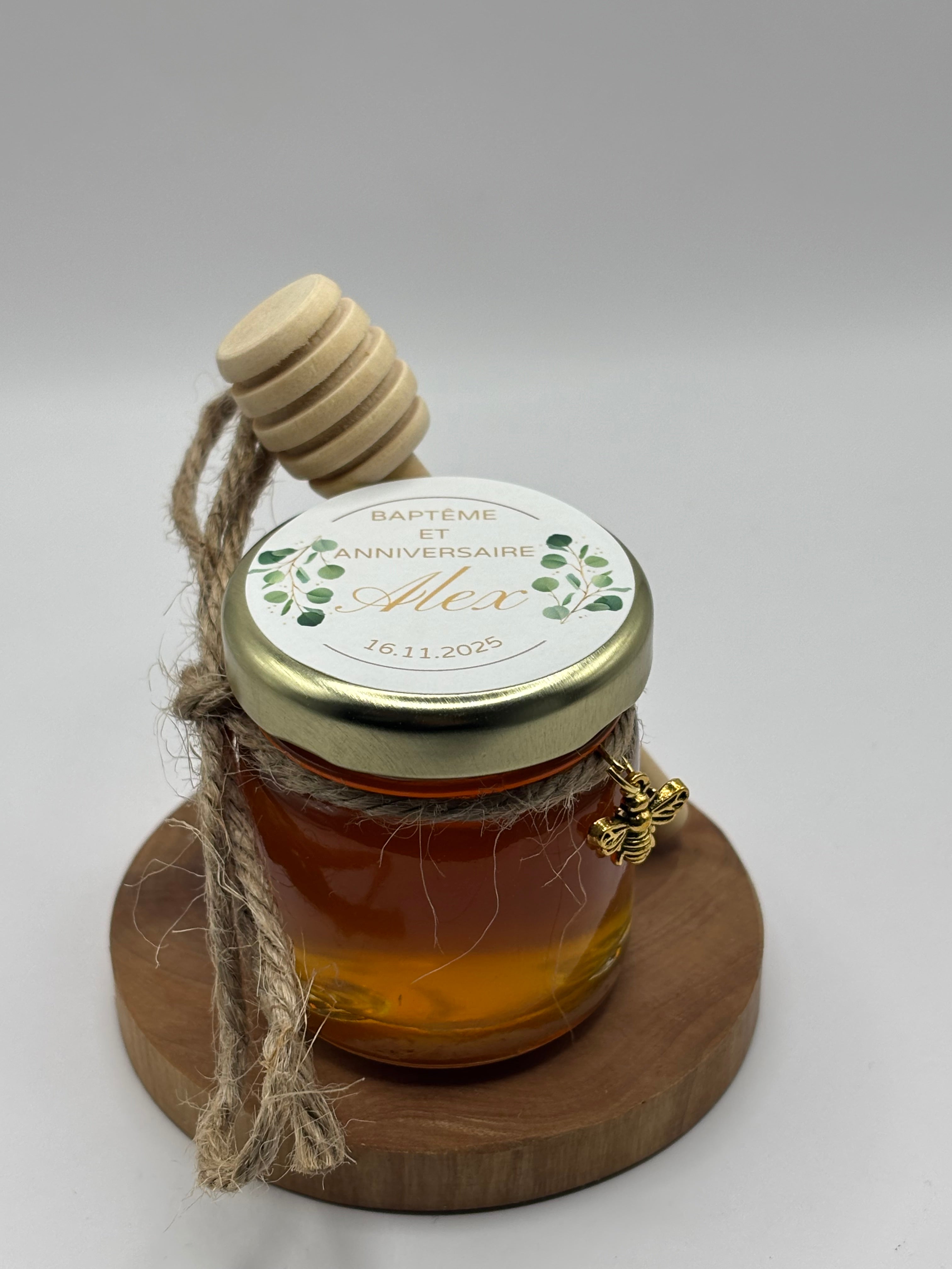 Pots de miel réalisés avec application, miel délicieux, envoi soigné et vendeur à l’écoute pour que le produit final soit comme on le souhaite.